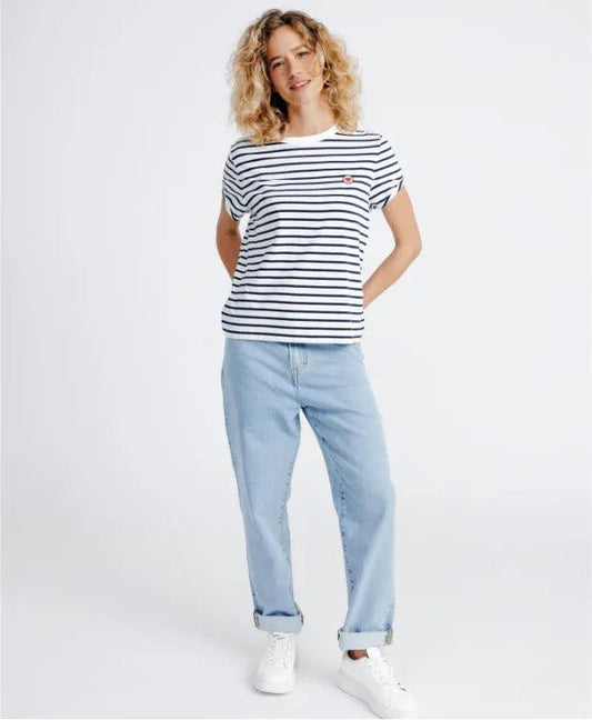Tee-shirt Marine| Coeur écru rayé