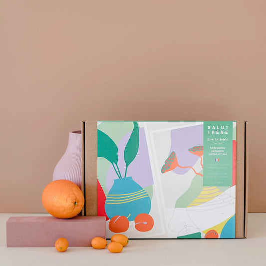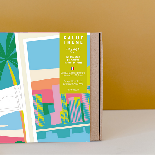 Lise, la créatrice de Salut Irène voulait créer une marque éco-responsable, fabriquée en France, et inspirée des souvenirs d'enfance et c'est donc la peinture par numéros qui a été son choix.