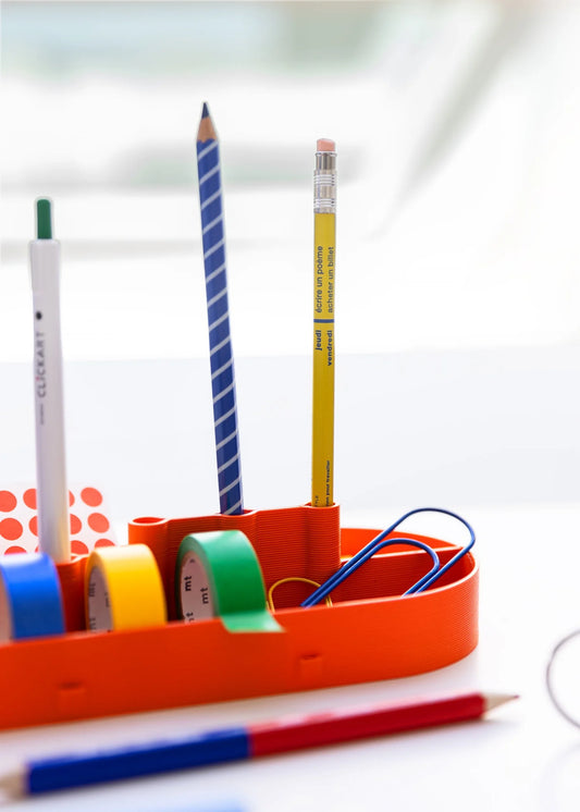 Soucieux de leur impact environnemental, le studio utilise exclusivement des matériaux recyclés et/ou recyclables pour la fabrication de ses objets. Parmi les plus utilisés, on trouve le rPLA issu d'emballages alimentaires recyclés, le PLA à base d'amidon de maïs, et le r-PETG dérivé de bouteilles en plastique recyclées. Ces matériaux proviennent de France et d'Europe, garantissant ainsi une production responsable et respectueuse de l'environnement.