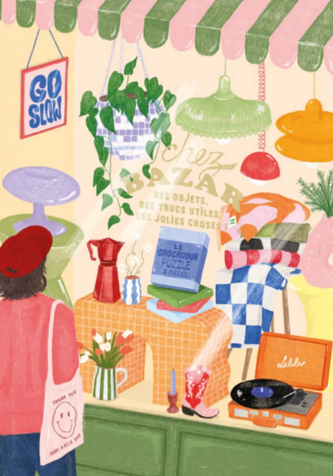 Plonge dans un univers tendre et poétique avec ce mini‑puzzle de 100 pièces, illustré par Puzzle Jour Férié. L’illustration dépeint une petite boutique pleine de charme, invitant à la rêverie et à la douceur — un petit monde à assembler et à garder avec soi.