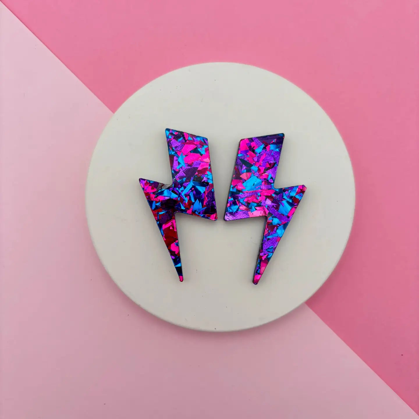 Illuminez votre look avec ces boucles d'oreilles puces en forme d'éclair. Un design moderne et tendance rehaussé par des paillettes scintillantes.