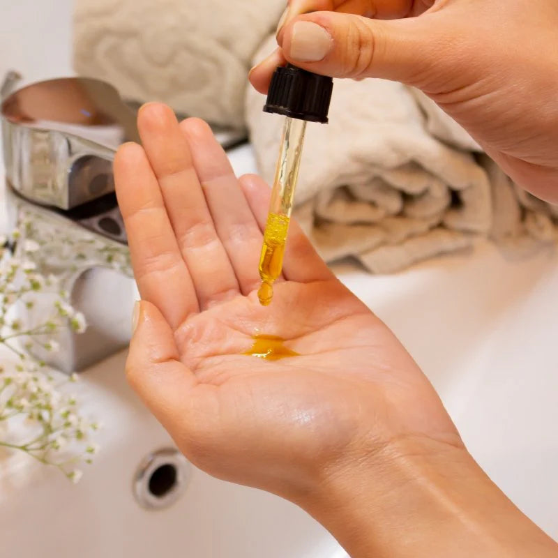Si vous le souhaitez, vous pouvez personnaliser votre rituel de soin en mélangeant une pompe de sérum avec votre huile préférée. Pour ce faire, versez les deux produits dans le creux de votre main, mélangez délicatement et appliquez le mélange sur votre peau.