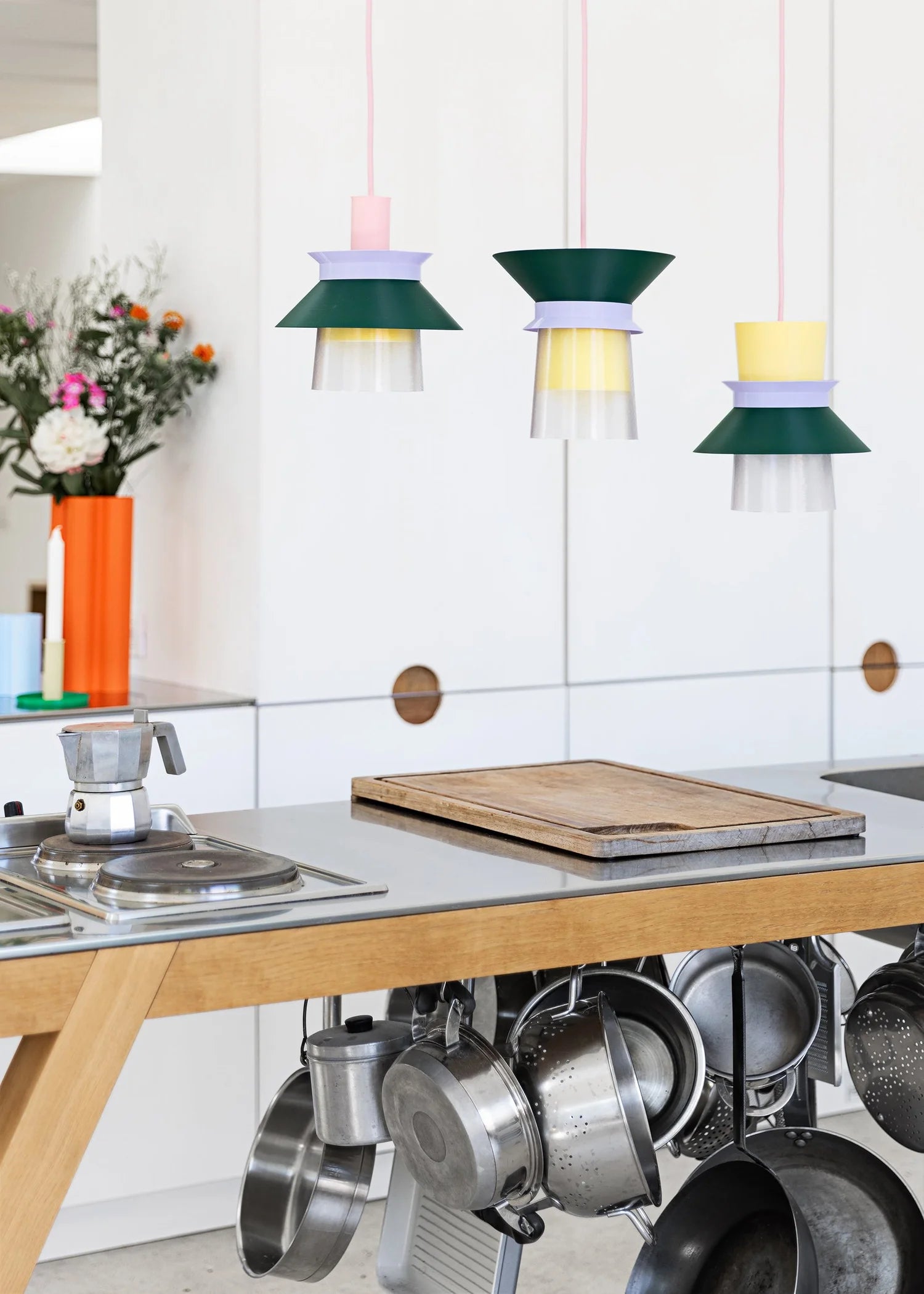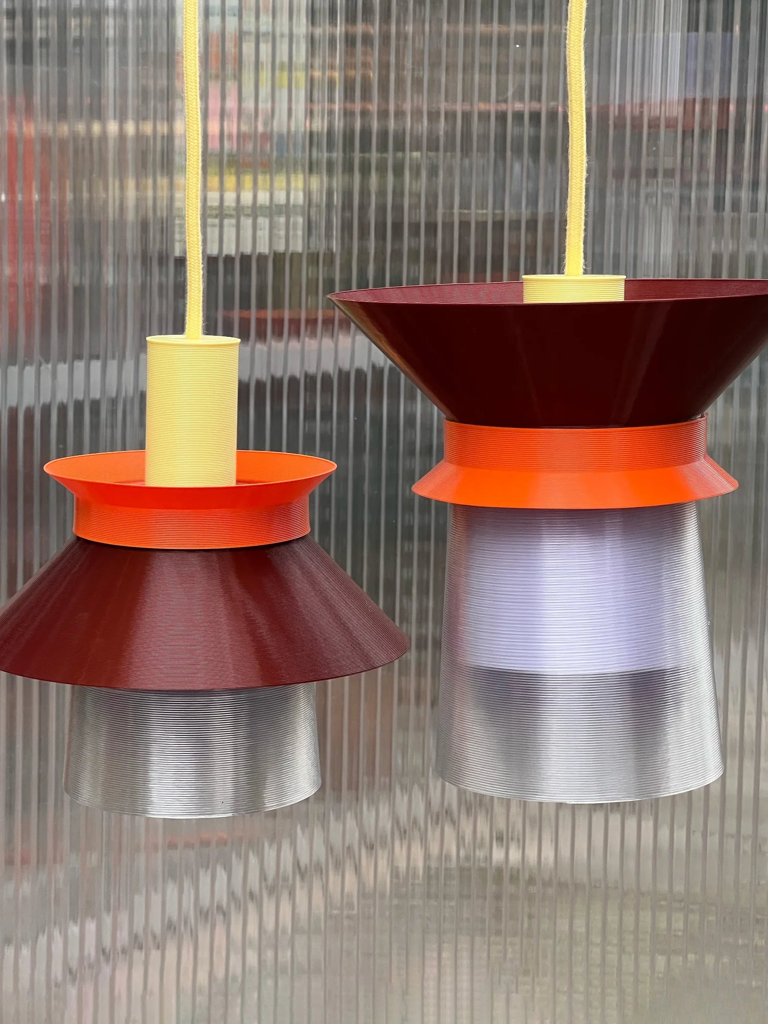 La suspension ROMI de Warren & Laetitia se compose de 3 modules interchangeables, imprimés en 3D à Paris à partir de plastiques recyclés.