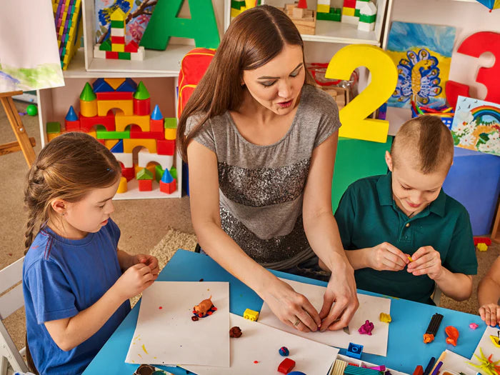 Le kit comprend également une notice « pas à pas » pour guider les enfants dans leurs premières créations (formes simples, reliefs à modeler à la main ou avec des outils).