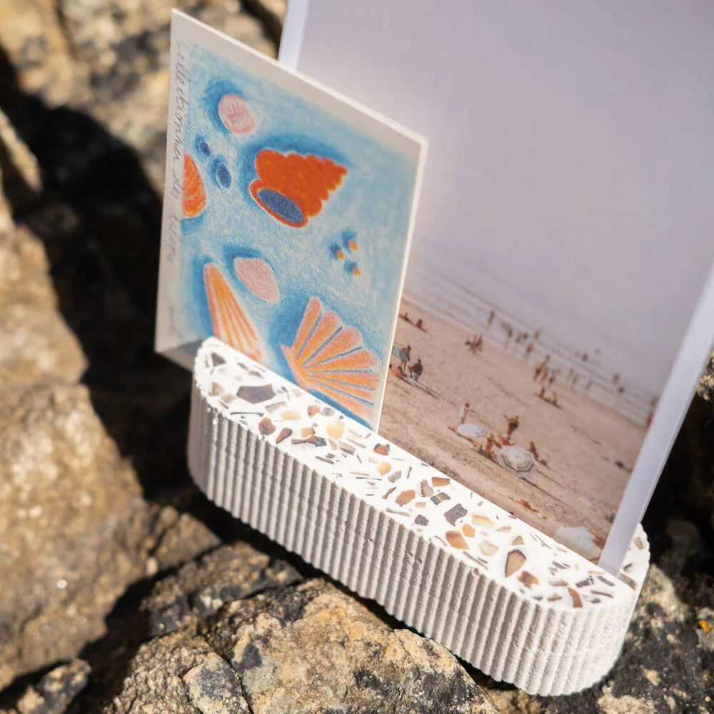Le porte-photo Colosse de Malàkio est une pièce déco artisanale, fabriquée à la main à Nantes à partir d’un matériau composite constitué à ~ 60 % de coquillages recyclés.