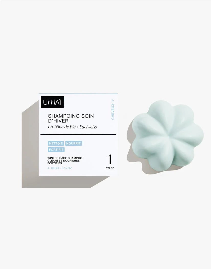 Anciennement nommé “Haute-Montagne”, le shampoing soin d’hiver Umaï est spécialement conçu pour protéger et réparer les cheveux exposés aux agressions hivernales. Enrichi en extrait huileux d’Edelweiss bio et en protéines végétales de blé, il nourrit intensément, reconstruit la fibre capillaire et redonne du volume aux cheveux aplatis par le froid.